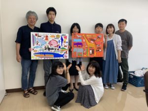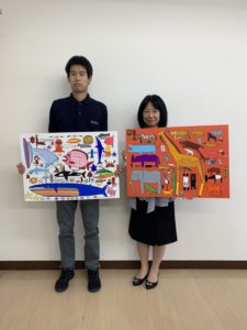 自閉症スペクトラム児のための造形教室にてアーティスト川部浩さんによる絵画贈呈式を