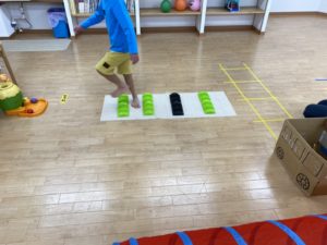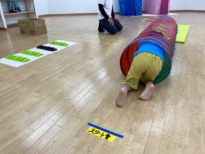 マットでどんぐりのようになって転がったり、好きな自由演技でマットの道を進んで、、、