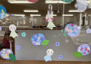 下の写真は、「いろいろサーキット」をやっています。「トンネルくぐり→両足ジャンプ→ゴムとび→輪投げ→カエルぱくぱく」と5種目をクリアーしていきます。何度も何度も挑戦して、楽しく体を動かしていました。