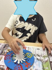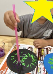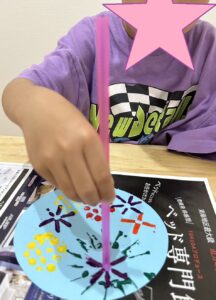 あどびぃでは、工作で、子どもたちがカラフルな花火の制作を始めました。