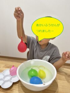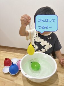 2023年7月25日 / 最終更新日時 : 2023年7月25日 愛知こどもネット あどびぃ お知らせ ヨーヨー風船釣りにチャレンジ! 夏祭りの出店でよく楽しんだヨーヨー風船釣りを「あどびぃ」でもやってみました。 釣り具の操作は、子どもたちの手首や指先の操作のトレーニングになります。 上手に釣れた時の喜びの笑顔が素敵でした😊