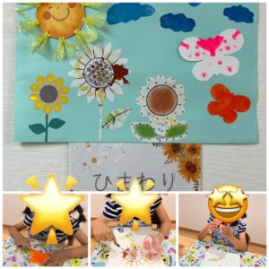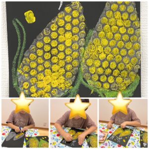 今回は、夏にぴったりの「とうもろこし」と「ひまわり」の工作に取り組んでいるところです。