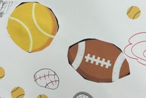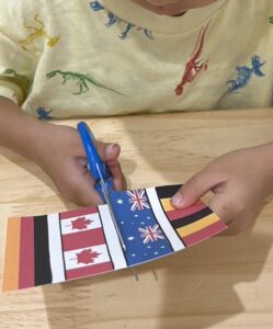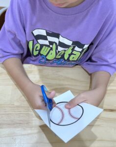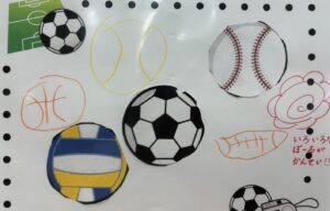 おけいこでは、運動会やスポーツが盛り上がる時期に合わせて万国旗やボールなどを切ったり、貼ったりする作業を取り入れてみました。みんな、はさみやのりの使い方がとっても上手になってきました(^▽^)/