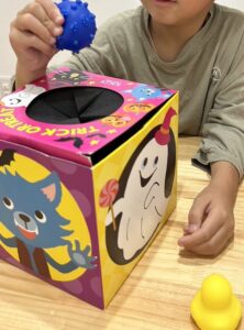 2023年10月25日 / 最終更新日時 : 2023年10月25日 愛知こどもネット あどびぃ お知らせ はてなボックスにチャレンジ! みんながチャレンジしているのは「はてなボックス」です(^▽^)/ いろいろな形のおもちゃが入っている「はてなボックス」から、課題と同じものを手探りで見つけて出せるか挑戦しています! さ~て、いくつ同じものを出せたかな(・・?