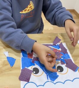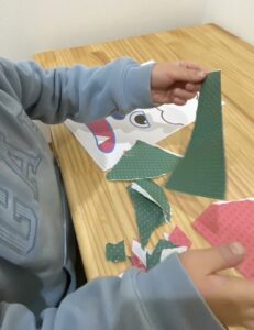 子どもたちが、おけいこの貼り絵で鬼の顔を作りました(^^)/
