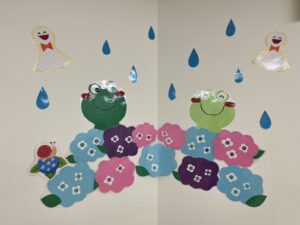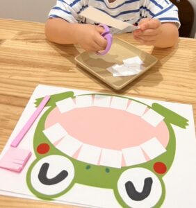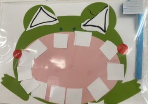 ハサミで切った歯や目を糊付けして、かわいいかえるさんができました\(^o^)/