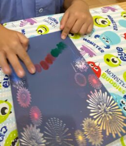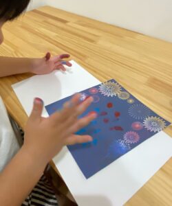 2024年7月19日 / 最終更新日時 : 2024年7月19日 愛知こどもネット あどびぃ お知らせ 夏の工作 パート4 梅雨が明け、夏らしい暑さがもどってきました🥵 暑い夏の夜は、花火を見て涼みたいですね🎇 子どもたちは、指に絵の具をつけ、夏に夜空を彩る打ち上げ花火作りを楽しみました\(^o^)/ いろいろな花火が打ちあがってとってもにぎやかになりました!