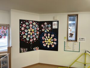 2024年7月30日 / 最終更新日時 : 2024年7月30日 愛知こどもネット あどびぃ お知らせ 花火がいっぱい! 夏になって、いろいろなところで花火大会が開かれています(^^)/ あどびぃのお部屋も、みんなの手作り花火でにぎやかになりました\(^o^)/ みんなの手形が集まってできた花火! 紙皿にタフロープを一生懸命巻きつけて作った花火!! とってもきれいだな~(^^)