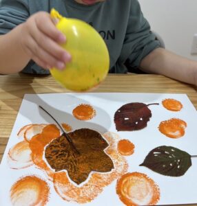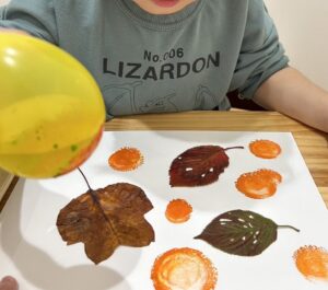 2024年11月15日 / 最終更新日時 : 2024年11月15日 愛知こどもネット あどびぃ お知らせ 秋の落ち葉でアートしました!パート3 秋の落ち葉アートの第3弾です(^^)/ 落ち葉を画用紙の上に置き、 その周りを絵の具をつけた水風船でポンポンと色をつけました(#^^#) 最後に秋の葉っぱもつけて完成です\(^o^)/