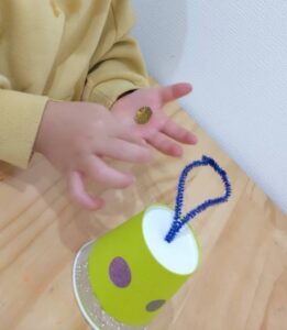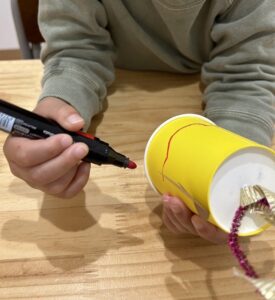紙コップに飾りやシールを貼り付け、模様などを描いて仕上げました!(^^)!