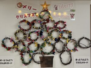 事業所壁面のクリスマスツリーがにぎやかになってきました🎄