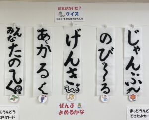 みんなが「たのしく」「あかるく」「げんき」に、おけいこをがんばって「のびーる」といいです(^▽^)/