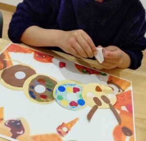 2025年2月14日 / 最終更新日時 : 2025年2月14日 愛知こどもネット あどびぃ お知らせ 「ドーナツあおむし」づくり(^^♪ ハサミでドーナツの丸い形を切り取り 切り取ったドーナツにのりをぬって台紙に貼りつけ シールやクレヨンなどで模様をつけたりして 「ドーナツあおむし」を作りました(^^)/ 暖かい春の到来が待ち遠しいです!(^^)!