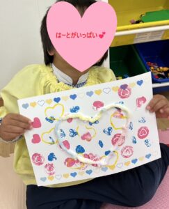 2025年3月14日 / 最終更新日時 : 2025年3月14日 愛知こどもネット あどびぃ お知らせ ❤がいっぱい(^^♪ ホワイトデーにちなんで、♡いっぱいの工作をしました💕 いろいろなハートのスタンプをいっぱい押したり(^^)/ 毛糸でハートの形を作ったりしました\(^o^)/ だれにプレゼントしようかなー(^^♪