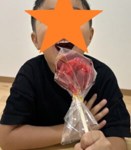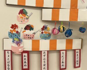 みんなが頑張って作った「チョコバナナ」「リンゴあめ」「わたあめ」「かき氷」「水ふうせん」などが