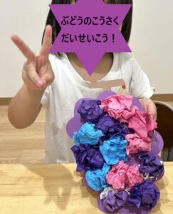 2025年9月4日 / 最終更新日時 : 2025年9月4日 愛知こどもネット あどびぃ お知らせ 楽しみな「あどびぃぶどう園」 🍇みんなが頑張って作った🍇 おいしそうな「ぶどう」が、次々とでき上がってきました(^^)/ できた「ぶどう」から、壁面に飾っていきます\(^o^)/ 「あどびぃぶどう園」の完成が楽しみです!(^^)!